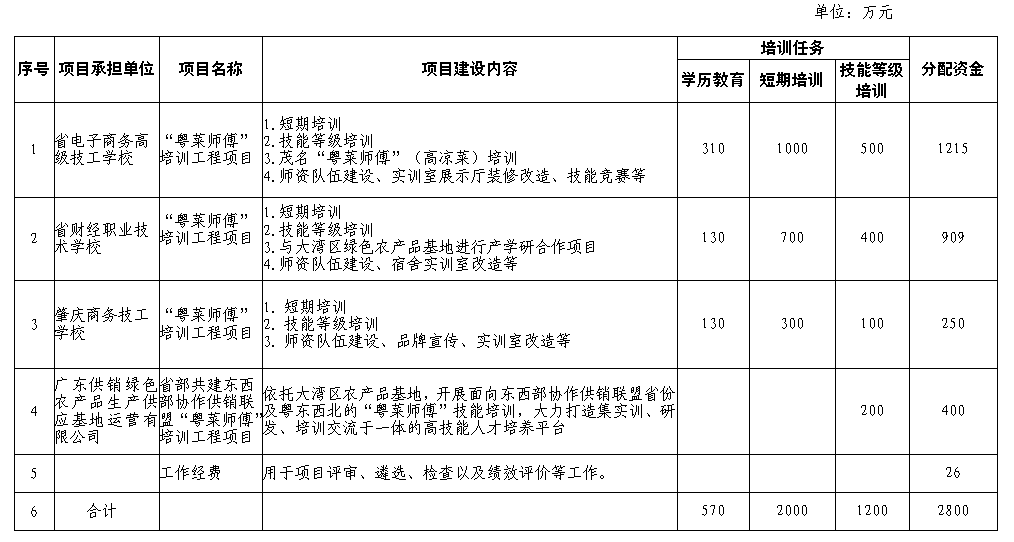 2024年long8娱乐 “粤菜师傅”培训工程专项资金分配方案