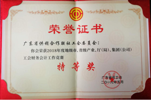根据广东省总工会《关于2018年度地级市、省级产业、厅(局)、集团(公司)工会财务会计工作竞赛评比情况的通报》(粤工总〔2019〕28号),long8娱乐 工会委员会荣获广东省总工会2018年度工会财务会计工作竞赛特等奖。