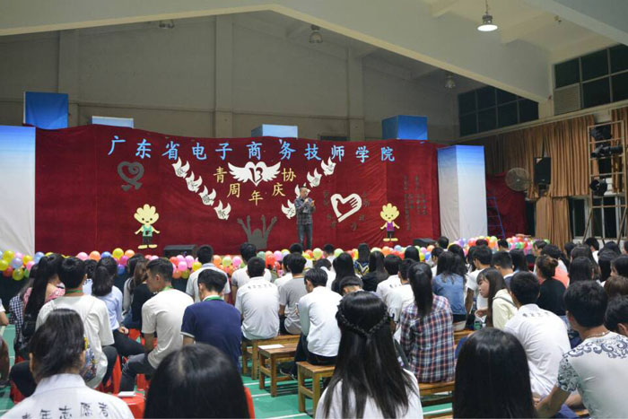11月21日晚,省电子商务技师学院青年志愿者协会(以下简称“青协”)在学院羽毛球馆举办庆典晚会,欢庆青协的第十三个生日。学生管理中心主任封定国、院团委社团联合会指导老师陈璇、协会指导老师李耀卓,中大社工代表、玉树社区义工代表,广州市蓝天技工学校、广东省食品药品职业技术学校、广东司法警官职业学院等十二个院校青年志愿者协会代表以及院团委、学生会、音响协会、形象协会等二十多个学院学生社团往届及现届成员共500余人参加了晚会。