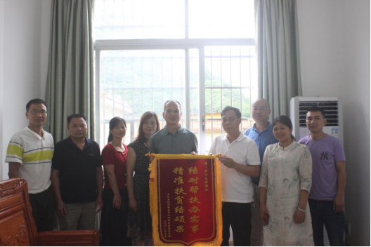 5月31日,枫湾镇茶园山村委书记带领群众将一面写着“结对帮扶办实事,精准扶贫结硕果”的锦旗送到了韶关市曲江区供销社负责人钟松德同志的手中,向他们表达了供销社多年以来对他们村委和群众多方面帮扶的感激之情。