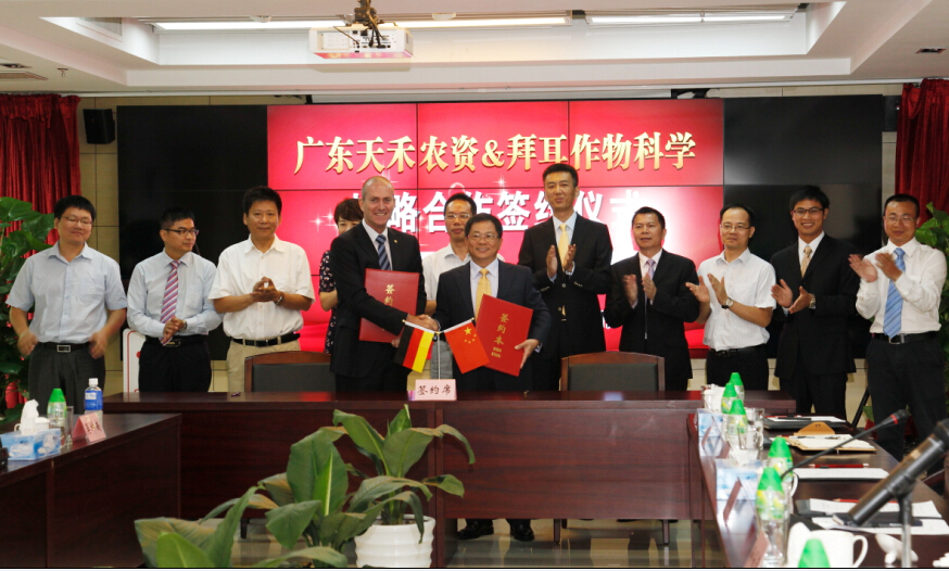 8月12日,广东天禾农资股份有限公司与拜耳作物科学(中国)有限公司签署战略合作协议。省社党组成员陈容秋、拜耳作物科学(中国)有限公司大中华区总经理贺远波(Rob)、天禾农资公司董事长兼总经理钟伯清等出席了签约仪式。