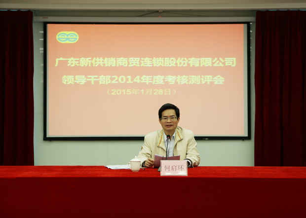 1月28日,新供销商贸公司在总部召开了2014年度总结表彰大会暨公司领导班子年度考评会。省社党组成员、理事会副主任何启环出席会议并讲话。公司班子成员及中层干部、子公司负责人、员工代表等共100人参加会议,省社综合业务处及有关处室代表列席会议。