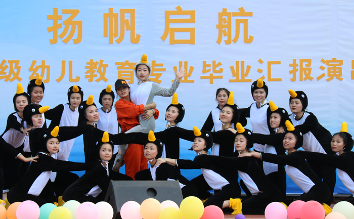 整场演出从形式到内容,都给人以美的享受,决不亚于看一场专业的大型表演。演出过程中高潮迭起,引来观众的阵阵掌声和喝彩声,充分展示了幼儿教育专业的同学们扎实的专业基础能力和富有特色的舞台表现力,同时也展现了同学们积极、乐观、向上的精神风貌。每一个节目的编排,每一个演员的表现,都是那么专业、那么认真,你根本看不出她们仅仅是用了两年时间就已经完成了美丽的蜕变,发生了质的变化,变成了一只只美丽的白天鹅。当然今天的一切都离不开孩子们的刻苦学习和老师的精心培育。