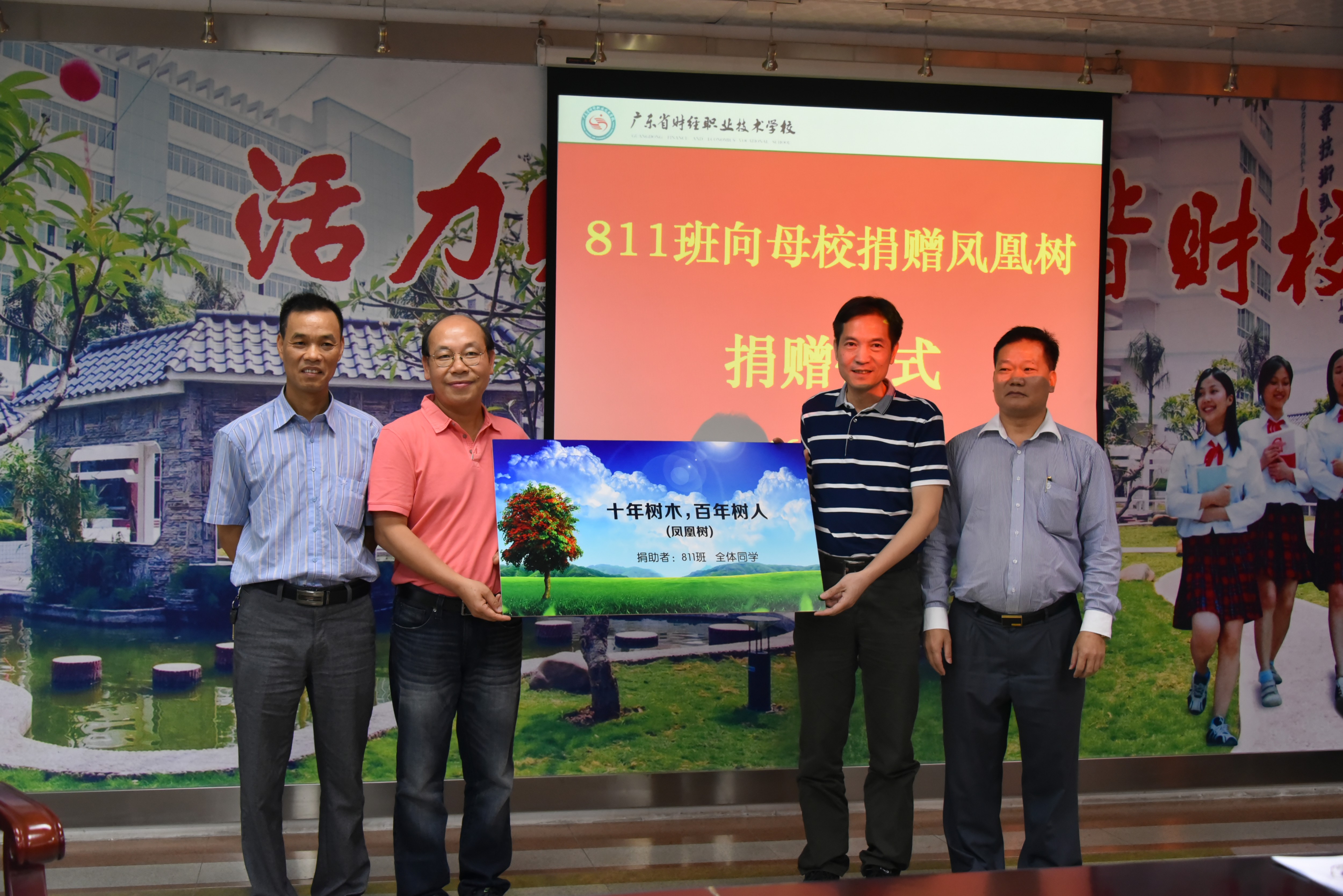 2016年6月18日,省财经学校811会计班校友在毕业33周年之际,重返母校聚会,找寻33年前的青葱岁月,并向母校捐赠凤凰树一棵。该班班主任、省财经学校原副校长蔡义明老师参加了聚会活动,省财经学校副校长周永生、办公室主任林辉、培训鉴定科科长陈剑熙代表学校热情接待了重返母校聚会的校友。