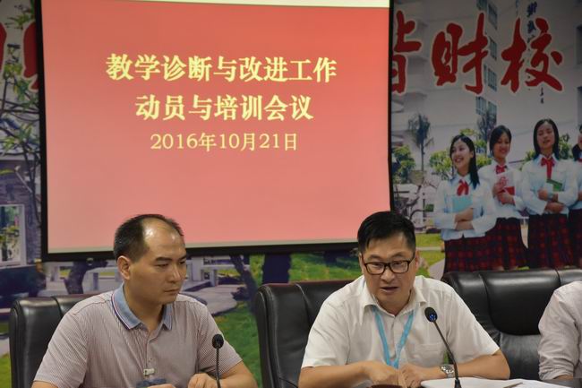 为了全面贯彻落实《广东省教育厅办公室转发教育部办公厅关于建立职业院校教学工作诊断与改进制度的通知》和广东省教育厅《关于做好中等职业学校教学诊断与改进工作的通知》,确保学校教学诊断与改进工作的统筹安排和顺利开展,切实提升学校自我诊断与自我改进的能力,建立健全常态化周期性的教学工作诊断与改进制度, 2016年10月21日中午省财经学校在四楼会议室召开了教学诊断与改进工作动员与培训会议。学校教学诊改领导小组和工作小组的全体成员参加了会议,会议由李广乾副校长主持。