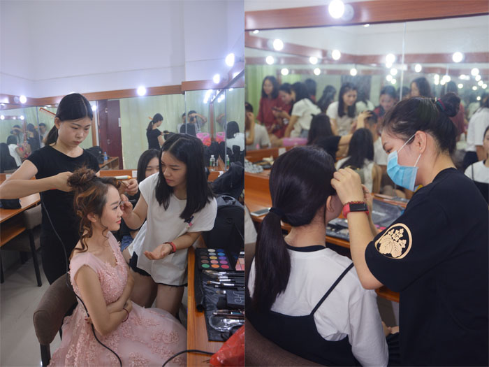 本次比赛历时两天,分初赛和决赛两个环节。紧张激烈的比赛环境不仅对比赛选手的体能和意志品质提出了严峻的考验,而且对各自学校的后勤保障工作也提出了更高的要求。本次比赛,省电子商务技师学院派出了强大的后勤保障团队,为选手们保驾护航。其中,两位16级化妆专业学生提供的专业形象设计,既增强了选手的舞台表演效果,为好成绩的取得奠定了基础,又使她们得到了宝贵的实践锻炼机会。