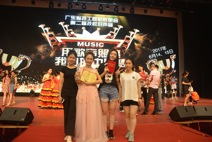 6月15日(星期四)晚,由中山技师学院承办的广东省技工院校教研会第二届“技校好声音”歌唱比赛决赛在该院北校区篮球馆内隆重举行,来自全省39所技工院校的100多名师生代表参加了比赛。省电子商务技师学院谭诗铭老师和姚雨同学分别参加教师组和学生组的比赛。经过两天的激烈角逐,谭诗铭老师不负众望,勇夺教师组银奖;姚雨同学获学生组“优秀歌手”荣誉称号。