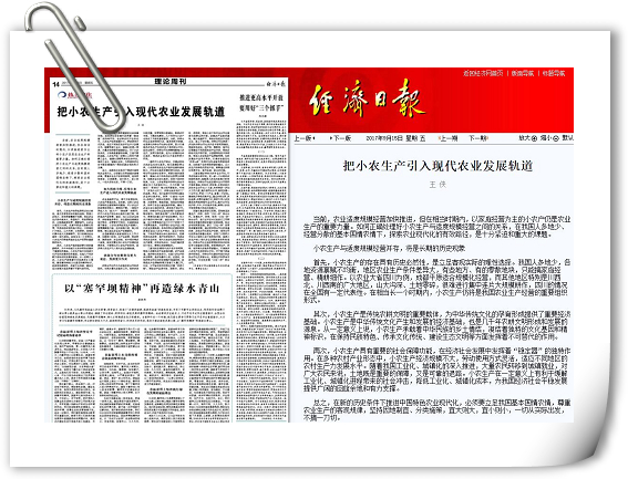 当前,农业适度规模经营加快推进,但在相当时期内,以家庭经营为主的小农户仍是农业生产的重要力量。如何正确处理好小农生产与适度规模经营之间的关系,在我国人多地少、经营分散的基本国情农情下,探索农业现代化的有效路径,是十分紧迫和重大的课题。