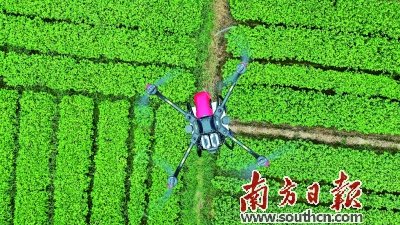 电白区供销合作联社由流通服务向全程农业社会化服务延伸,图为无人机作业。杨腾飞 摄
