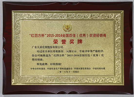 近日,广东天禾农资股份有限公司、广西供销农资有限公司、福建天禾绿保农资有限公司荣获“2015-2016全国百佳(优秀)农资经销商”称号。