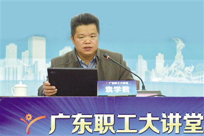 著名山水画家袁学君做客广东职工大讲堂。林景余 摄