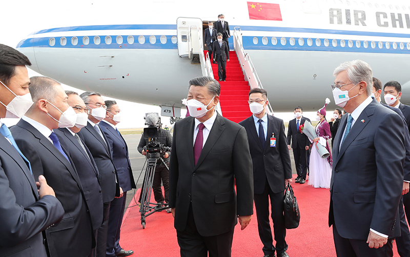 当地时间9月14日下午,国家主席习近平乘专机抵达努尔苏丹,开始对哈萨克斯坦共和国进行国事访问。习近平主席同托卡耶夫总统签署并发表《中华人民共和国和哈萨克斯坦共和国建交30周年联合声明》,宣布为中哈构建世代友好、高度互信、休戚与共的命运共同体目标和愿景而努力。新华社记者 丁林 摄