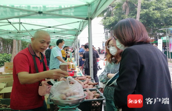 “有水果、蔬菜,还有肉类,特别方便。”海南师范大学的辅导员魏老师第一次逛助农集市,这样别开生面的集市让她觉得新鲜,她也在集市上买到了爱吃的儋州地瓜和圣女果,她光顾的正是儋州供销社的摊位。