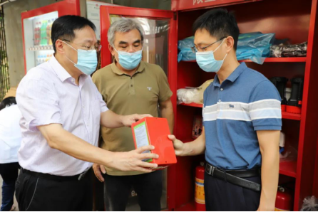 黄蓝辉首先与学校班子成员、党委委员座谈,详细了解学校安全管理各方面工作情况、隐患排查及整治情况和重点工作情况;随后对学校食堂的食品留样与厨房设备、学生公寓的用电和消防设施等情况进行安全检查督查。
