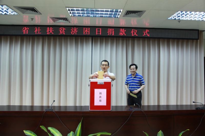 为积极响应省委、省政府关于“广东扶贫济困日”的号召,加大新一轮扶贫工作的力度,6月23日下午,省社举办了“广东扶贫济困日”集中募捐活动,省社领导带头捐款,直属各单位、机关各处室广大干部职工也积极响应,踊跃捐款。