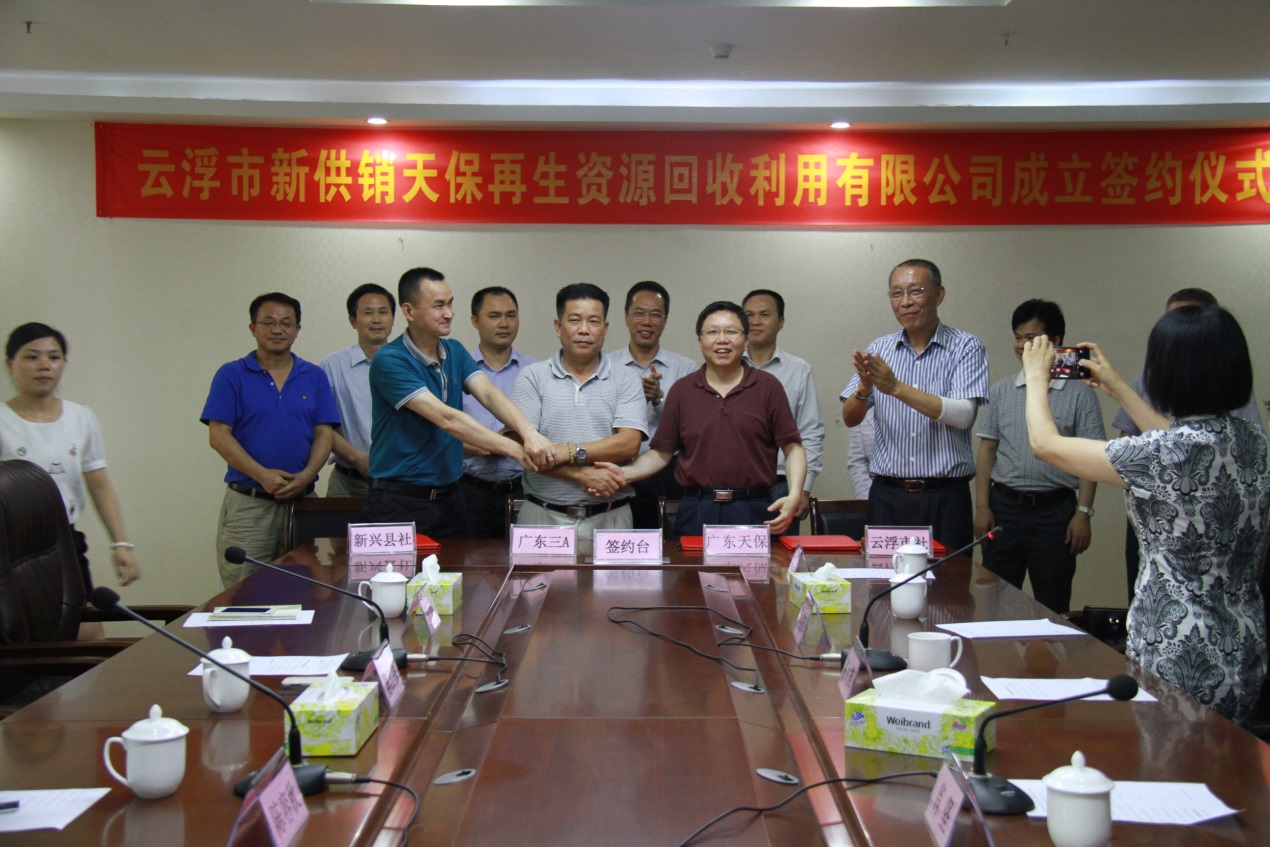 4月28日,云浮市新供销天保再生资源回收利用有限公司成立签约仪式在天保公司会议室举行。long8娱乐 党组成员、理事会副主任陈容秋,云浮市供销合作联社主任肖坚、广东三A不锈钢有限公司董事长陈木辉一行出席签约仪式,签约仪式由天保公司董事长兼总经理陈江强主持。