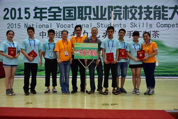2015年6月27-28日,由教育部、中华全国供销合作总社主办的2015年全国职业院校手工制茶大赛(中职组)在贵州省都匀市的贵州省内贸学校举行。省财经学校由钟劲东校长亲任领队,与郑惠丰和胡小苏两位指导教师及陈炤灵、杨富锋、翁育滨、黄荣坤、魏佳琳、陈育山等六位参赛选手组成的广东省代表队,代表广东与来自全国19个省市代表队的122名参赛选手进行了激烈的同场竞技。最终,省财经学校荣获二等奖二项、三等奖三项等多个奖项,六人参赛五人获奖居全国获奖率榜首,实现了省财经学校在这一赛事上的又一次突破,得到了广东省教育厅和long8娱乐 的一致好评和高度认可,同时也赢得了同行们的广泛赞誉!