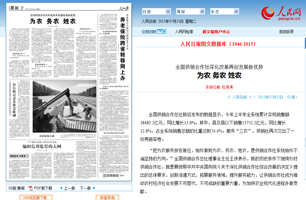 “把为农服务放在首位,始终做到为农、务农、姓农,是供销合作社系统始终不渝坚持的方向。”全国供销合作总社理事会主任王侠表示,新的历史条件下继续办好供销合作社,就是要按照中共中央国务院《关于深化供销合作社综合改革的决定》提出的总体要求,创新流通方式,拓展服务领域,提升服务能力,让供销合作社成为推动农村经济社会发展不可替代、不可或缺的重要力量,为加快农业现代化进程多做贡献。