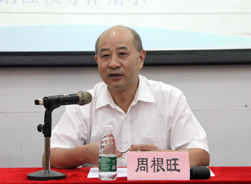 周根旺副主任代表省社党组、理事会向辛勤耕耘在教学、管理和后勤服务岗位上的全体教职员工致以诚挚的节日问候和崇高的敬意。向受到表彰的南粤优秀教师和学校优秀教师、优秀班主任及所有受表彰人员表示祝贺。他对我院近期的工作成绩和办学理念给予了充分的肯定和赞赏。他指出,近一年来,以潘朝阳校长为班长的学校领导班子,团结进取,务实肯干,带领全体教职员工认真贯彻党的教育方针,贯彻落实省政府有关职业教育的决策部署和省社党组的工作要求,紧紧围绕“三年规范,五年大变样”的目标,外树品牌,苦练内功,在招生就业、教研教改、培训鉴定、校园建设、重点项目等方面均取得了显著的成效。特别是在创新人才培养模式上,提出了“五力合一,打造出彩技能人才”,全面增强学校教育的领导力、感召力、渗透力、影响力和传播力。