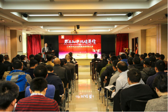 会议首先由天禾股份公司董事长邹宁作广东天禾2016年工作总结及2017年工作计划,题为“不忘初心,砥砺前行,在黑夜中守望黎明的曙光”。邹宁董事长分析了2016年广东天禾经受的种种困难,指出公司在极度艰难的市场环境下,全体员工深入贯彻落实供销社综合改革的各项要求,紧紧围绕公司第二个五年发展战略规划部署以及“经营质量年”主题,不以熊市思维面对熊市,始终直面市场、直面困难,团结一致,不屈不挠,沉着应对,力挽狂澜,成功抵御了各种不利因素的叠加冲击,经受住了超过大半年的打击和考验,终于在年底打了一场漂亮的翻身仗。邹宁董事长对2016年广东天禾的各项工作进行了总结,从坚持“深耕广东、覆盖华南、走向全国”战略、做实差异化经营服务网络、优化资源配置打造自主经营品牌、创新体制机制强化风险控制、扎实开展党风廉政建设工作等五个方面,回顾了公司一年来的经营管理情况及取得的成绩,并分析了公司当前存在的几个突出问题。邹宁董事长指出,2017年广东天禾将迎来关键一年,公司要以效益为纲,以全面预算管理为纲,以核心产品体系建设及核心门店体系建设为重要抓手,围绕“以农户为中心、以作物为导向”的经营理念,按照“深耕广东、覆盖华南、走向全国”的战略步伐,继续做大集散、做强网络。重点做好几项工作:要继续做大业务经营规模,加强市场拓展和网络布局,夯实经营质量;要把全面预算管理落实到位,刚性执行,以管理创新提高经营管理质量;要加快推动重点项目建设工作,继续做好上市相关准备工作,不断加强党建工作。