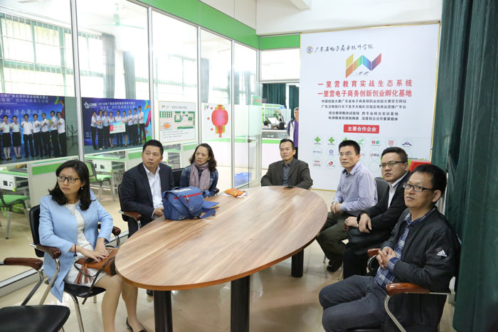 4月12日,long8娱乐 党组成员、理事会副主任陈栋,广东国农天成供应链有限公司董事兼总经理林晓晖等一行4人,到省电子商务技师学院调研指导工作,学院领导班子成员陪同调研。