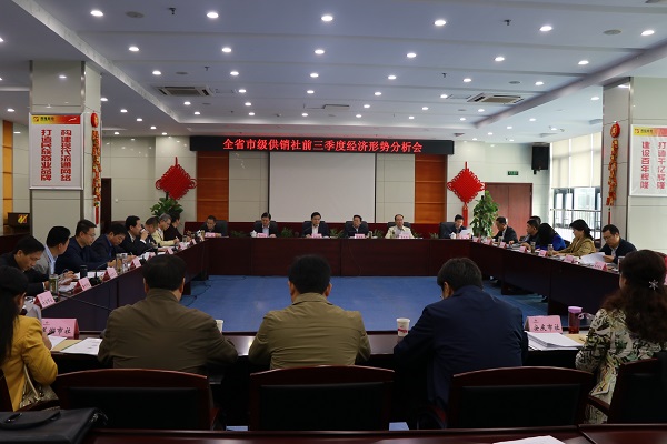 在合肥召开市级供销社前三季度经济形势分析会,总结前期工作,分析当前形势,对下一阶段改革发展工作作出安排部署。省社党组书记、理事会主任吴良斯作总结讲话,省社领导张海林、魏邦余、唐庆明、秦武、曹斌出席会议并结合各自分管工作进行点评。省社机关处室主要负责同志参加会议。16个市社、2个省直管县社汇报了各地改革发展工作,省社综合业务处对今年前三季度全省系统经济运行情况进行了通报。