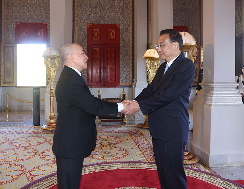 新华社金边11月11日电(记者 吴长伟 毛鹏飞)当地时间11月11日上午,国务院总理李克强在金边王宫会见柬埔寨国王西哈莫尼。