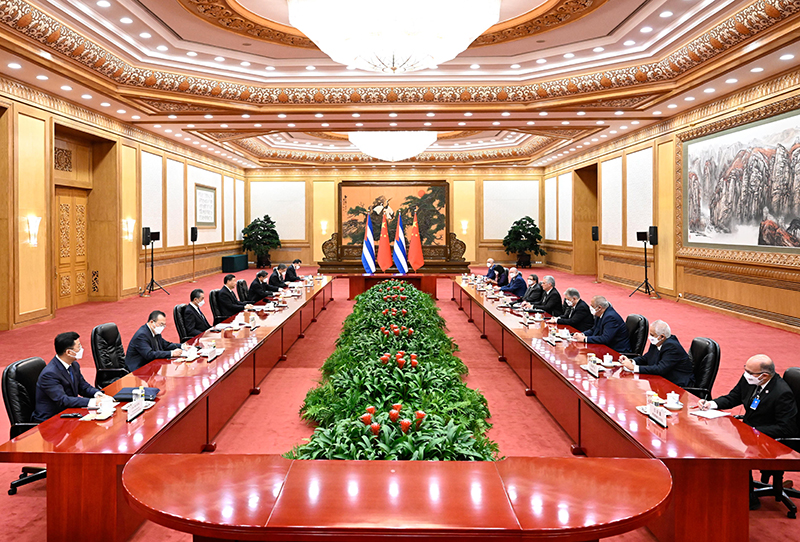 习近平同古巴共产党中央委员会第一书记、古巴国家主席迪亚斯-卡内尔举行会谈