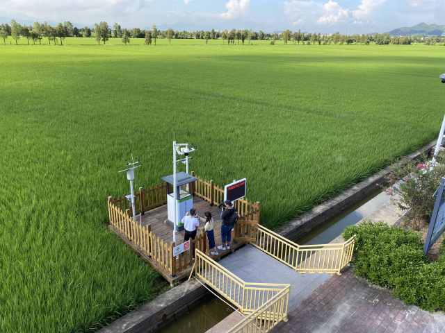科学防控农作物病虫害,是保障粮食安全和农业绿色高质量发展的重要措施。“以前,我们从早到晚拿着竹竿在田里扫着走,通过估算飞起来的“白蛾”(害虫成虫)数量来计算虫害暴发的高峰日。这种确定病虫害的‘土方法’耗时长、投入人力多,随着服务面积的扩大,已不再适用新时代了。”黄昭沛说,对此,台山农服应用农业物联网监测系统,在集中提供托管服务的乡镇设置多个监测站点,通过诱杀并拍照智能识别害虫,形成相关数据,实现24小时动态监测害虫信息。同时,该系统还可以监测采集空气温湿度、土壤温湿度和pH值、降雨量等信息,为绿色防控提供更多参考。目前,已为台山市12万亩农田提供监测服务,未来将拓展覆盖台山市80%以上的耕地。