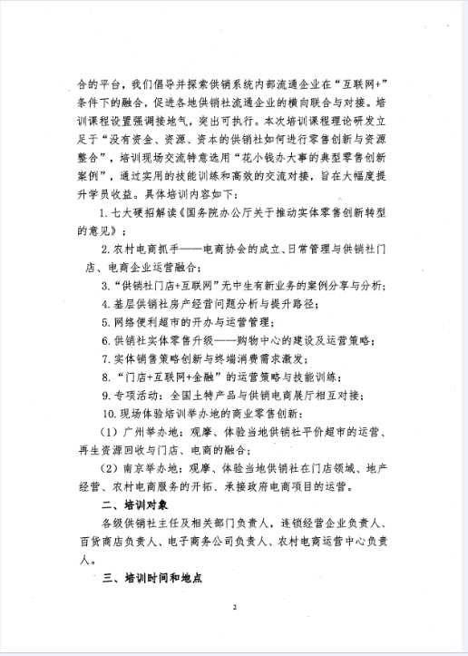 关于举办实体零售创新转型与门店电商融合发展培训班的通知