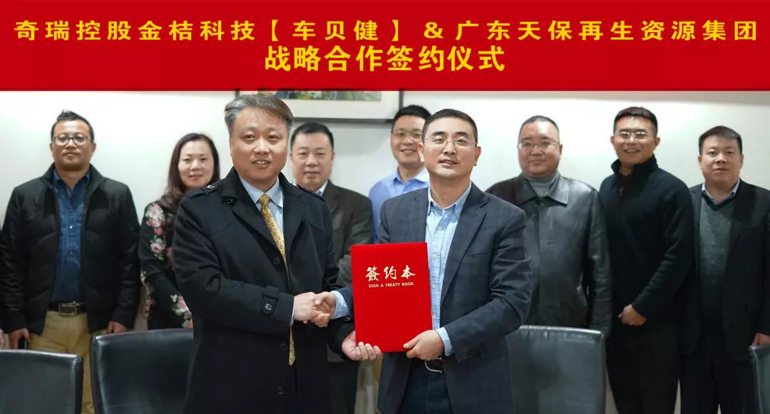 广东新供销天保再生资源集团有限公司副总经理蒋双庆、广东天保新材料有限责任公司总经理吴永刚、销售总监贾山、监事会主席郑鸿雁,奇瑞控股副总经理徐晖、奇瑞战略发展部部长刘立叶、金桔科技金融保险总监马民丰、车贝健汽车科技CEO张朝俊、安徽泓欧商务咨询管理有限公司总经理黄梅花出席签约仪式。