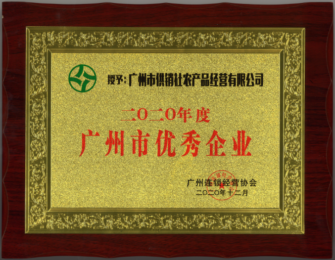2020年12月29日下午,广州市供销社农产品经营有限公司作为会员单位出席参加了广州连锁经营协会五届四次会员大会暨庆祝协会成立25周年晚会。会上广州市供销社农产品经营有限公司荣获了“2020年度广州市优秀企业”和“2020年度抗疫保供积极单位”称号。