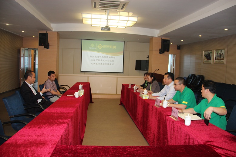 4月21日,中粮集团油脂部总经理张友帆一行到广东新供销天润粮油集团有限公司参观交流,天润粮油集团董事长陈伟进出席了座谈会。