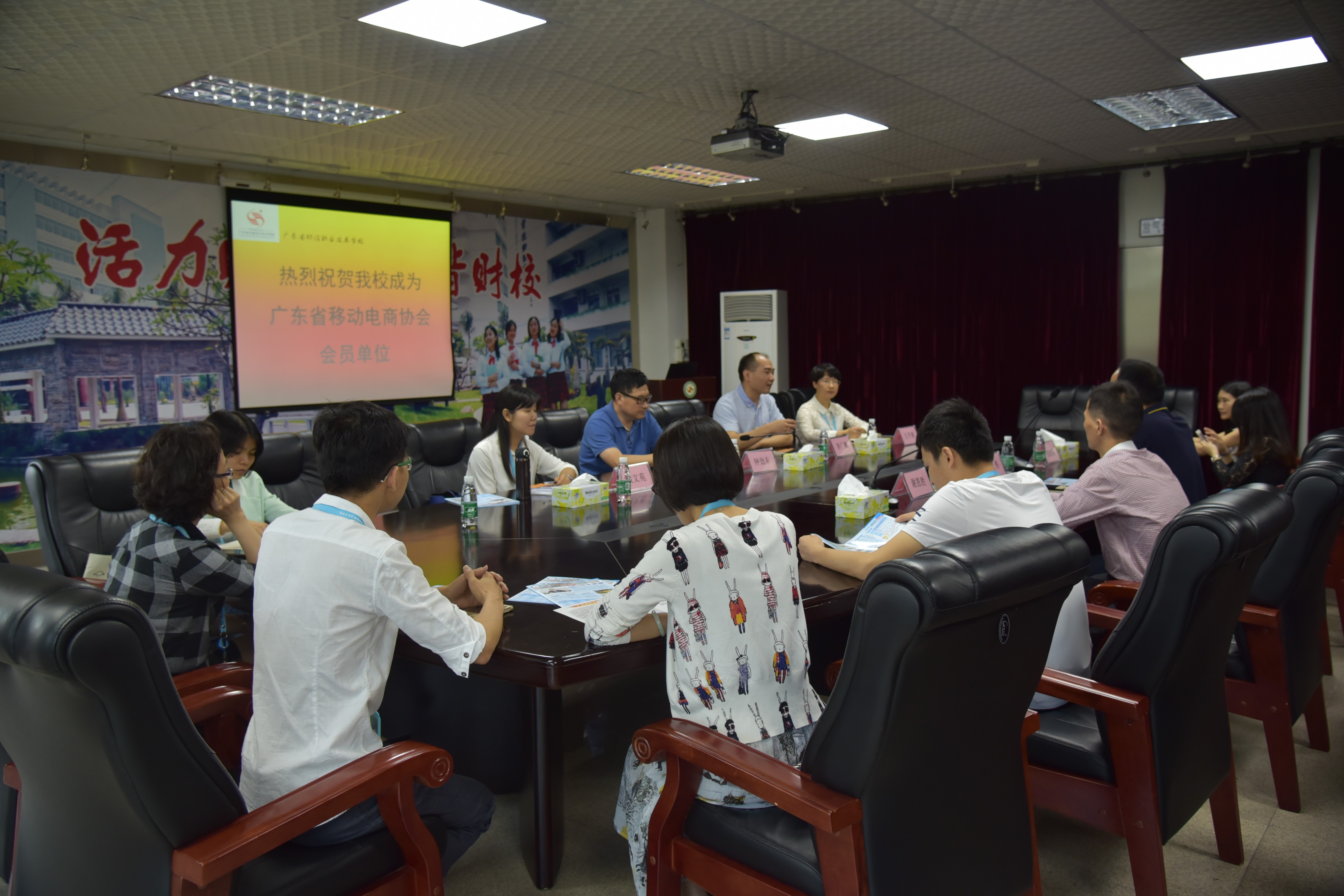 刘正秀会长首先祝贺省财经学校正式成为广东省移动电商协会会员单位。接着他介绍了关于广东省移动电商协会的相关情况。双方达成了校企合作战略的意向:移动电商协会将为省财经学校电商人才培养提供相应的资源支持,省财经学校将成为广东省移动电商协会人才输送基地,实现校企双赢。