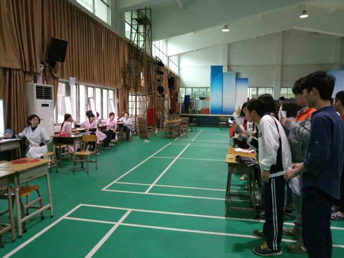 体检地点分三个区域,一号教学楼9间课室、羽毛球馆及学生第一食堂前门。体检项目主要有:男女内科、外科检查,身高、体重测量,抽血,视力,辨色力,血压及胸部X光透视。体检采用班级分批轮候的方法,没轮到的班级则按照课程表正常上课。