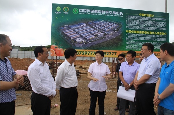 王侠在中国供销赣南脐橙交易中心就项目建设情况进行调研。