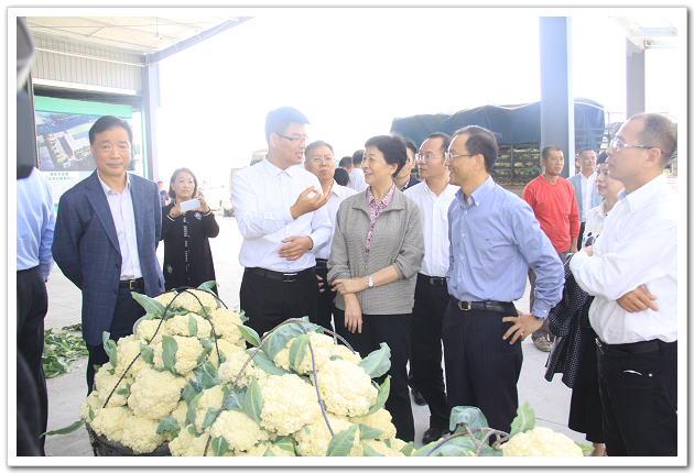 王侠一行在梅屿蔬菜专业合作社了解产品销售情况。