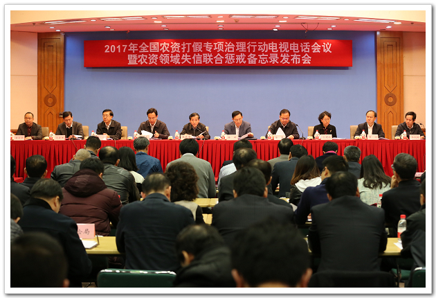 2月27日,农业部、最高人民法院、最高人民检察院、国家发展改革委、工业和信息化部、公安部、工商总局、质检总局、供销合作总社等八部门在京联合召开2017年全国农资打假专项治理行动电视电话会议暨农资领域失信联合惩戒备忘录发布会,动员部署2017年全国农资打假专项治理行动,发布农资领域失信联合惩戒备忘录。总社理事会副主任骆琳出席会议。